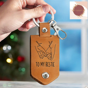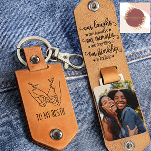 To My Friend Personalized Photo Leather Keychain, Gift For Besties