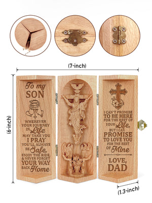 To My Son/Daughter, Openable Wooden Cylinder Sculpture of Jesus Christ is a beautifully crafted Christian gift that combines both artistic expression and spiritual significance. This sculpture is made from high-quality wood, offering a timeless and natural aesthetic that will enhance any space. The design features an intricately carved representation of Jesus Christ, capturing a moment of peace and reverence.