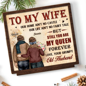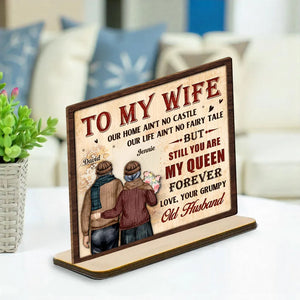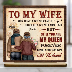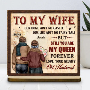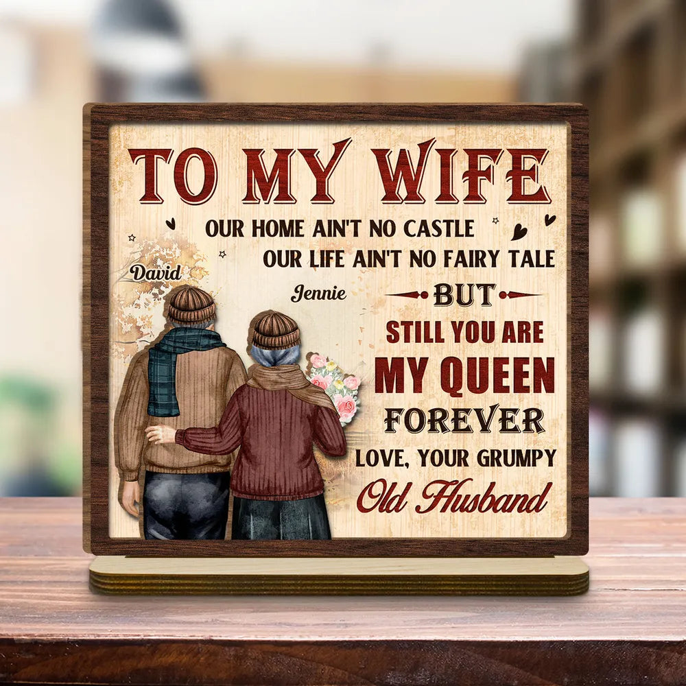 To My Wife Our Home Ain't No Castle 2-layered Wood Sign, Old Couple Gifts, Anniversary Gift For Wife