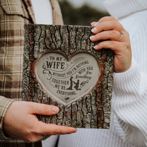 Celebrate your love with the "To My Wife, Without You I'm Nothing" Wood Plaque—a heartfelt and timeless gift. This beautifully crafted plaque is made of premium-quality wood, designed to last and bring warmth to any space. Its touching message makes it the perfect token of appreciation for the love and support your wife provides every day.