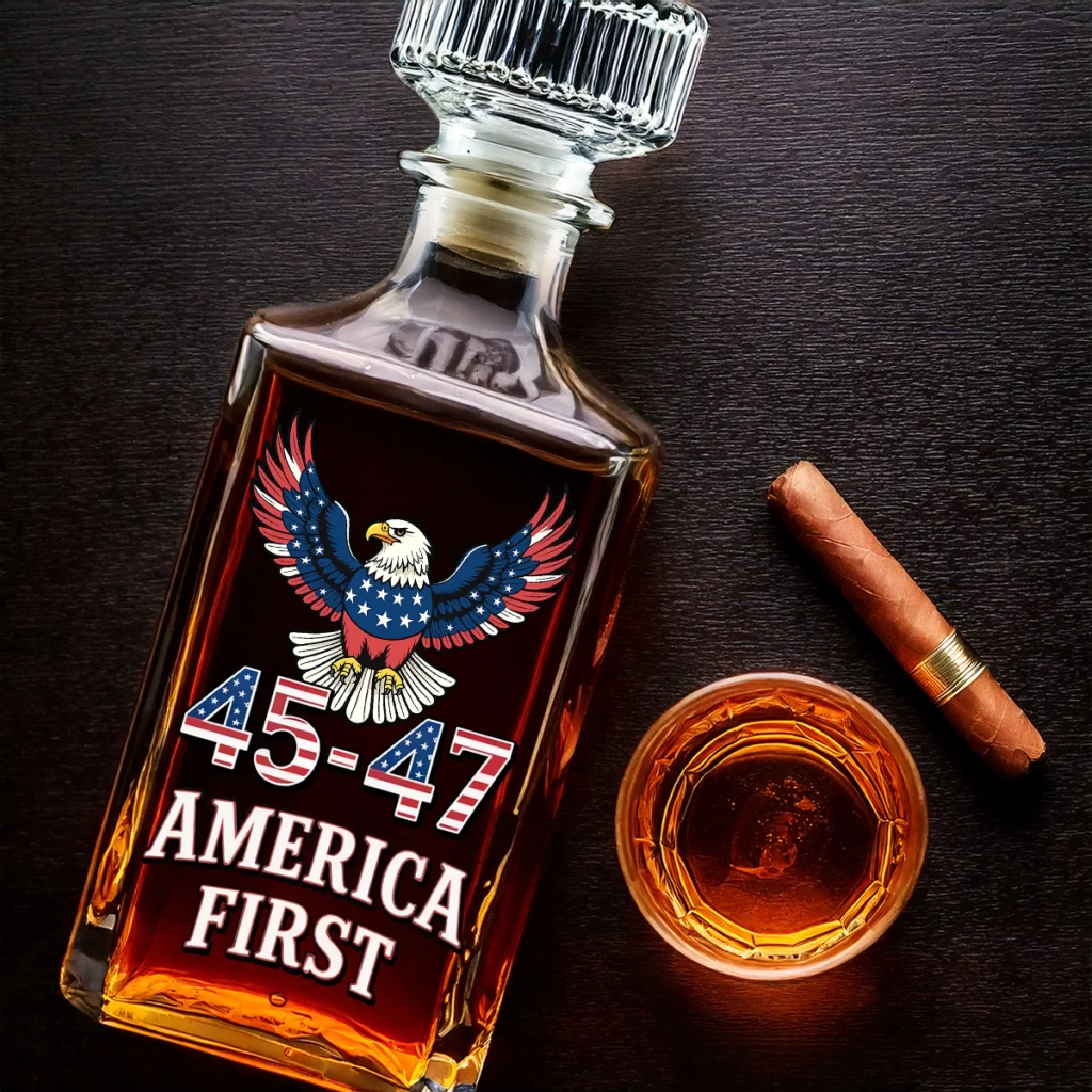 Toast To The Red, White And Blue Whiskey Decanter Set American Glassware Wine Glasses Set