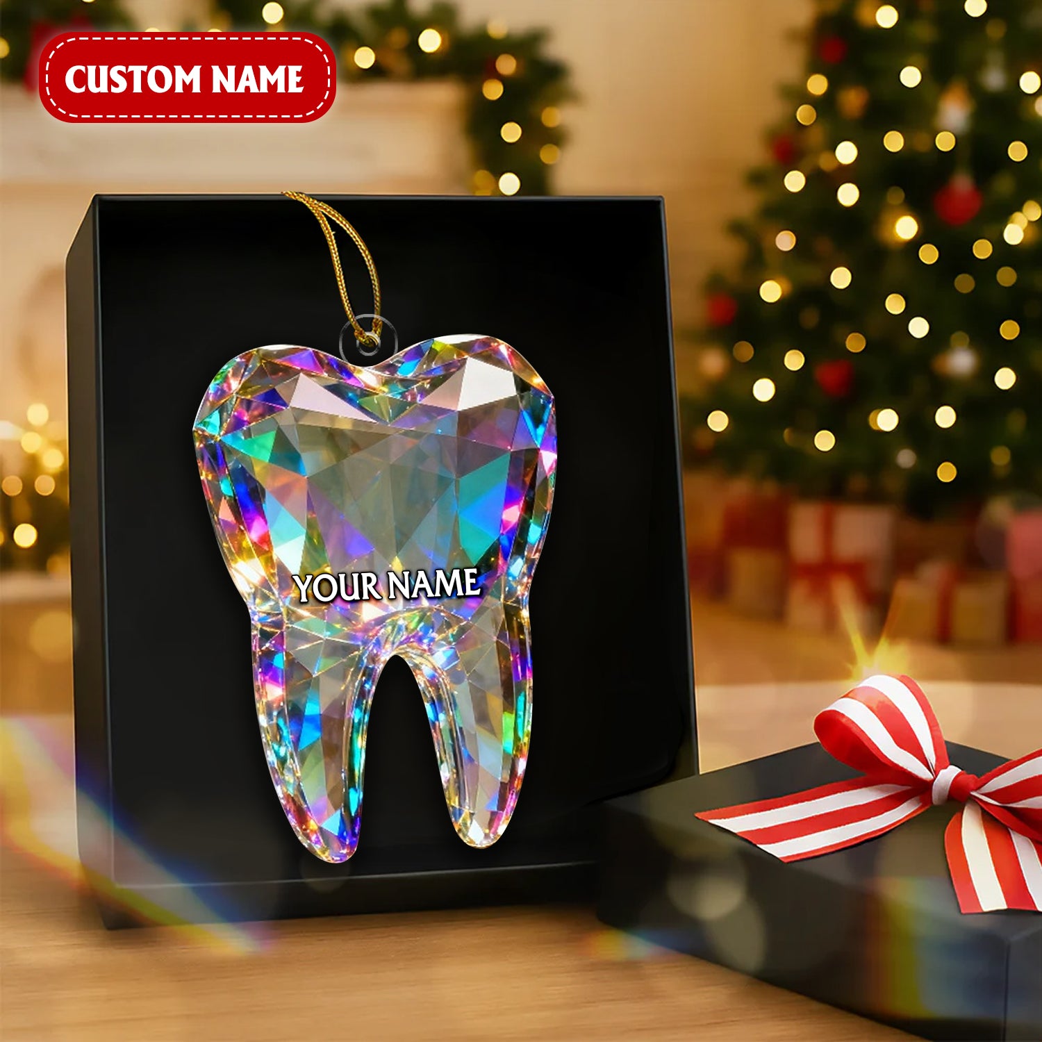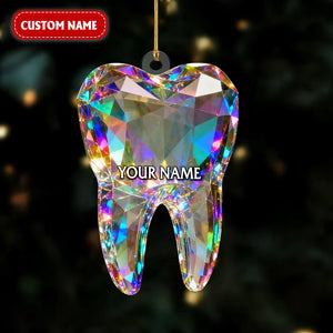Tooth Art Figurine Stain Glass Crystal Effect Acrylic Ornament, Dentist Decor Christmas Unique Gift