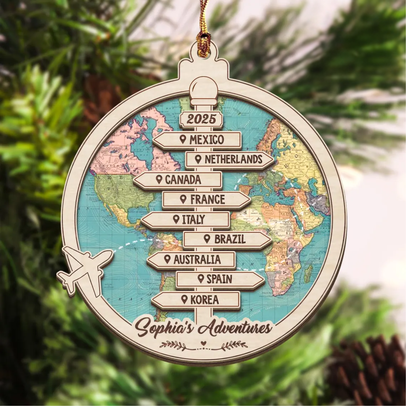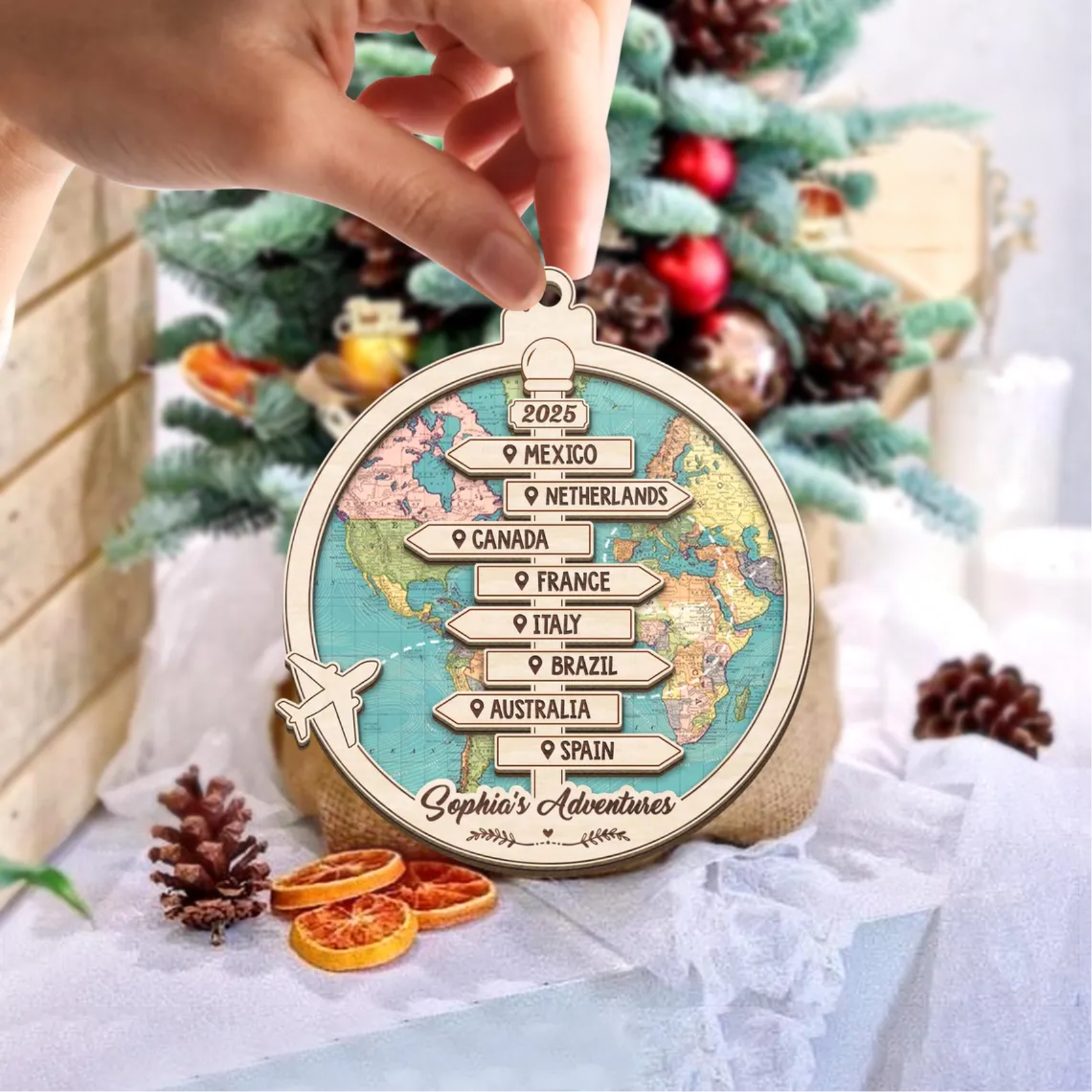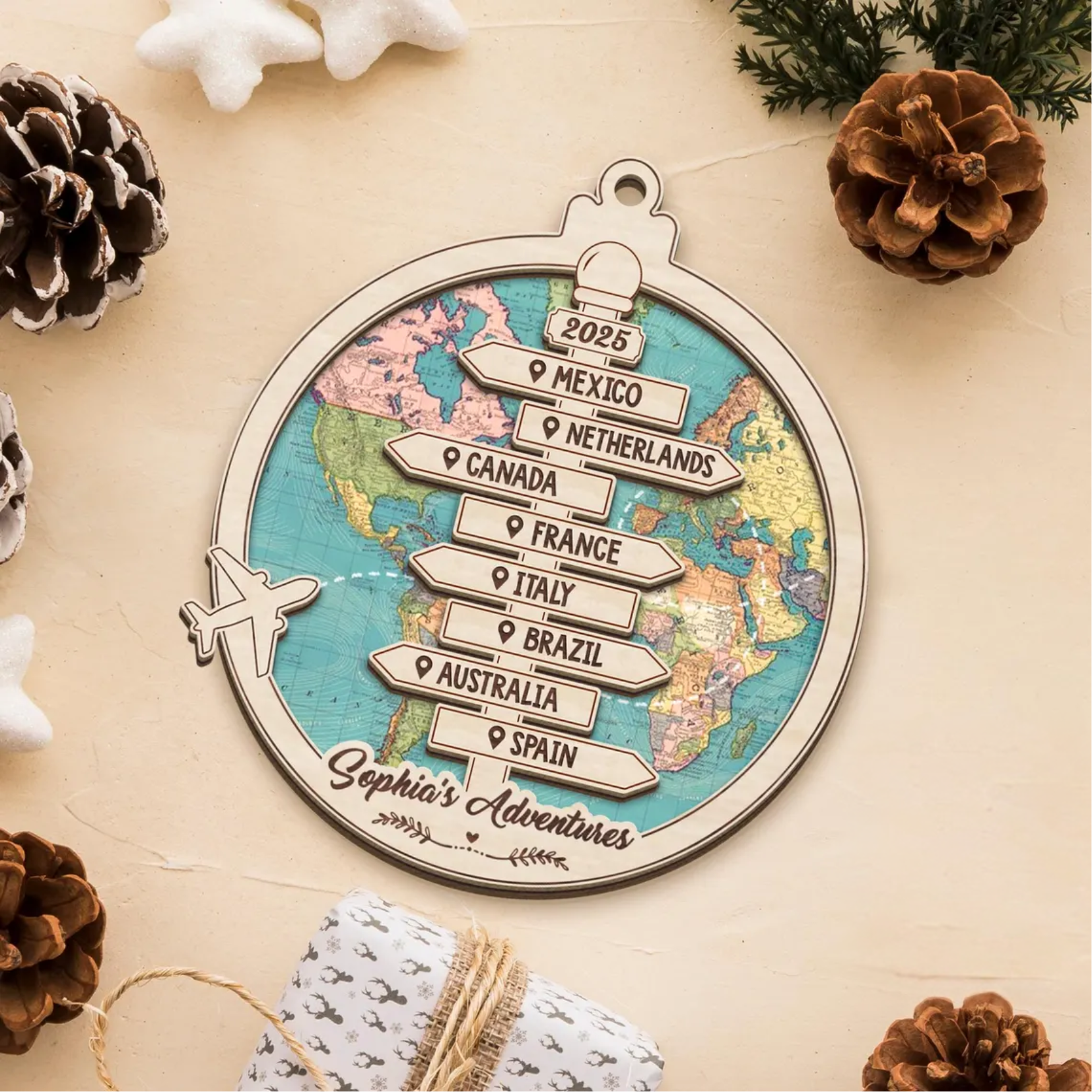 Travel Adventure Christmas Ornament, Traveling Destination Custom Wood Ornament, Christmas Gift For Travellers