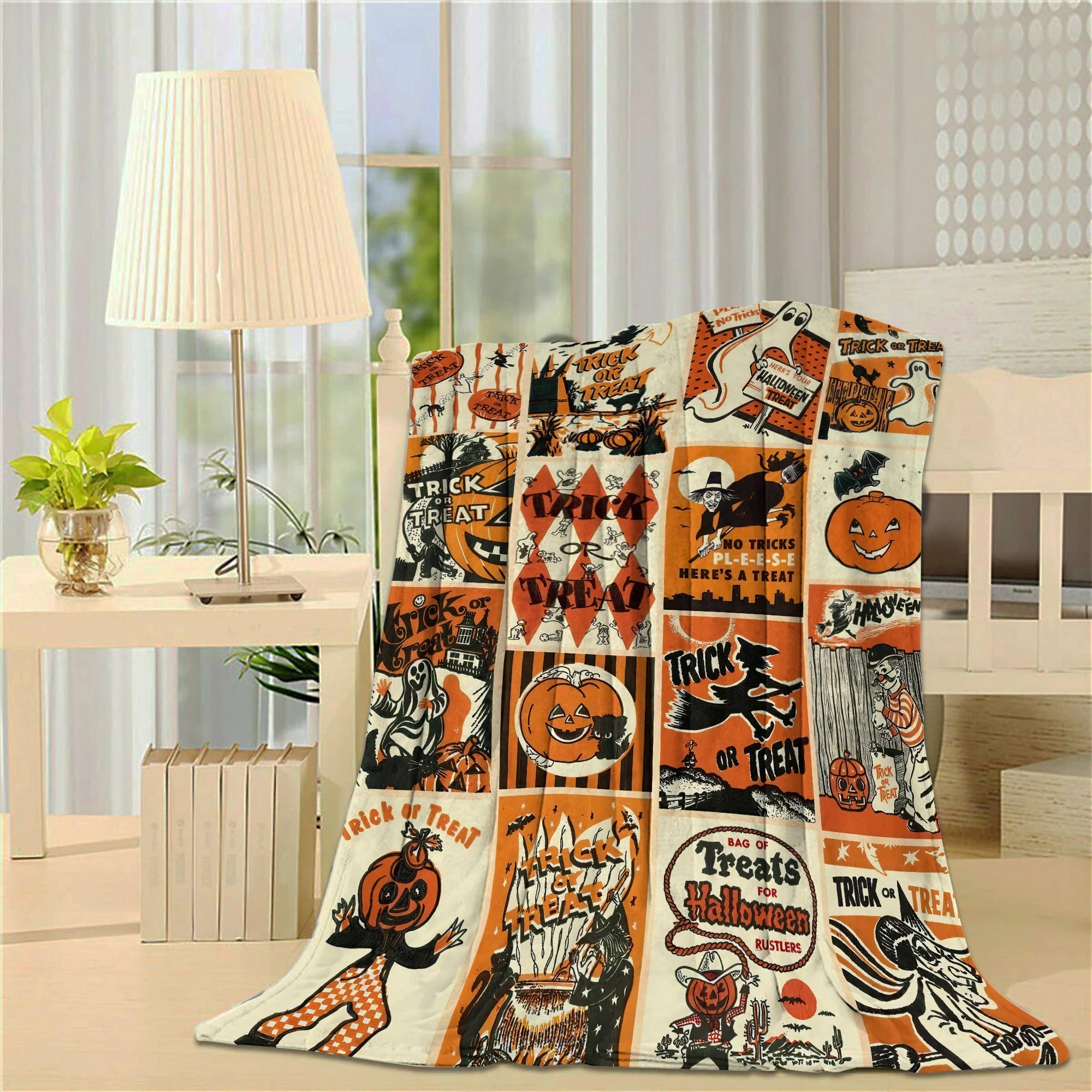 Trick Or Treat Quilt Blanket, Ghost Pumpkin Throw Blanket, Spooky Season Decor