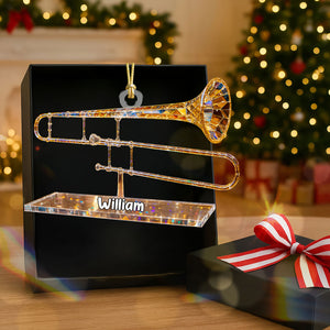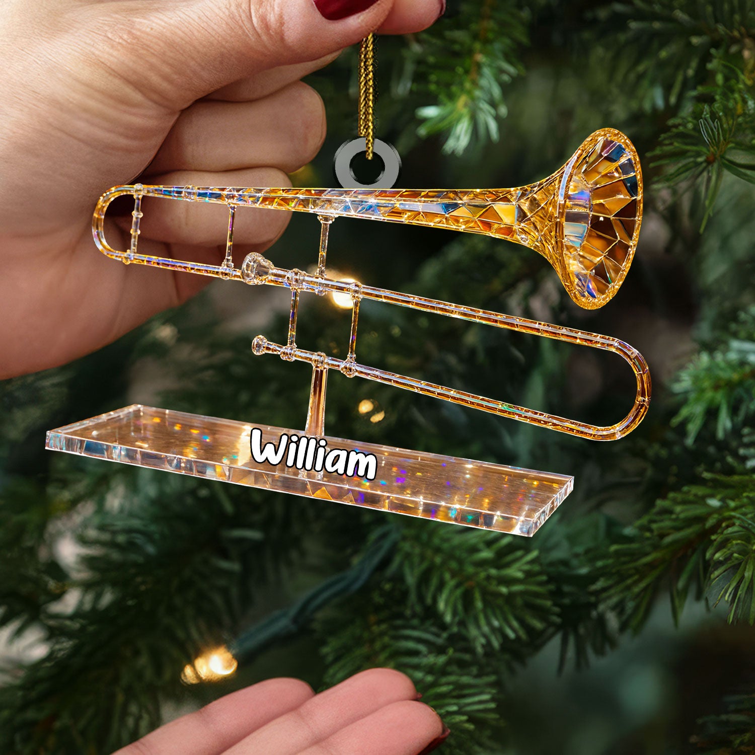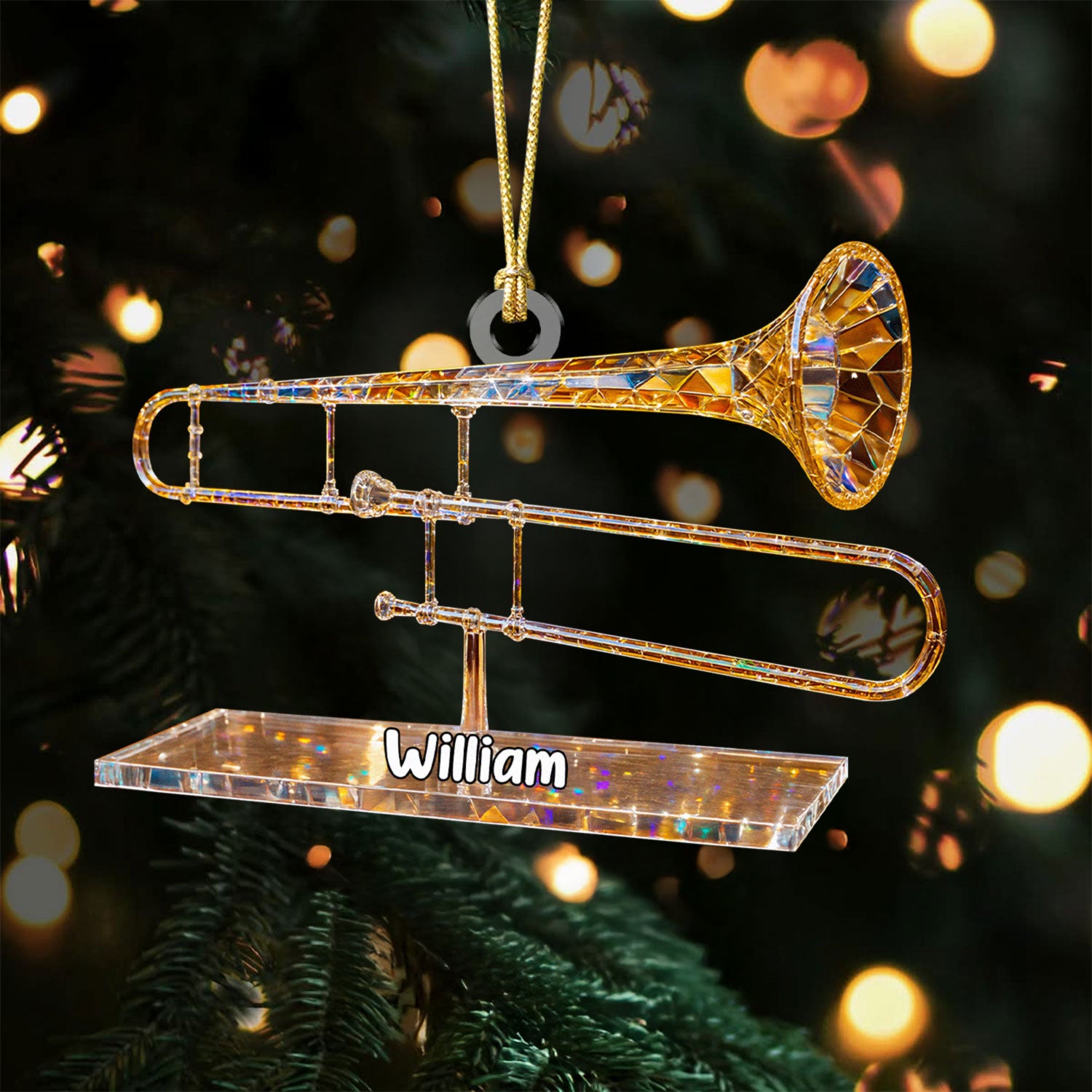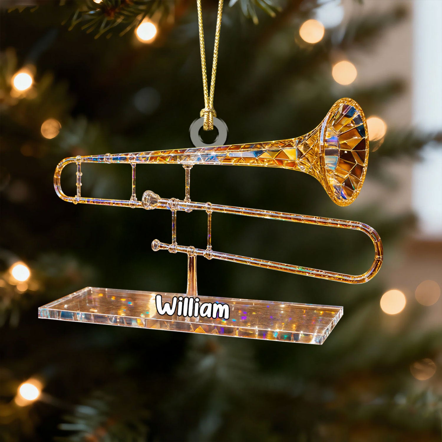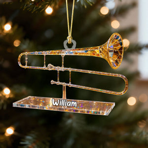 Trombone Custom Name Stained Glass Effect Acrylic Christmas Ornament, Music Ornament, Musician Gift
