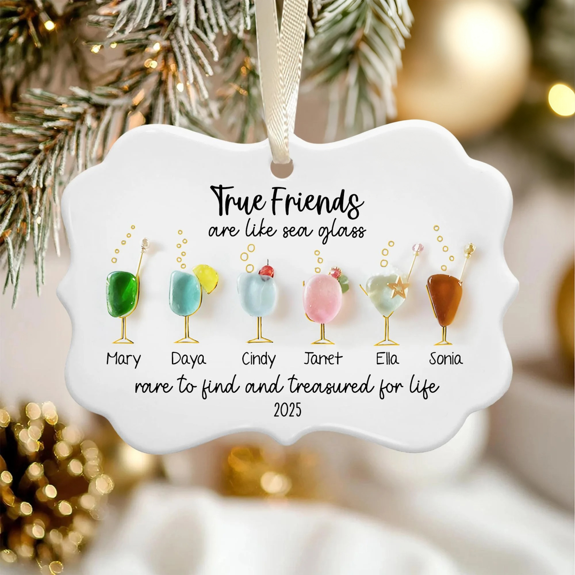 True Friends Acrylic On Ceramic Friendship Decor Xmas Ornament, Sea Glass Christmas Ceramic Ornament