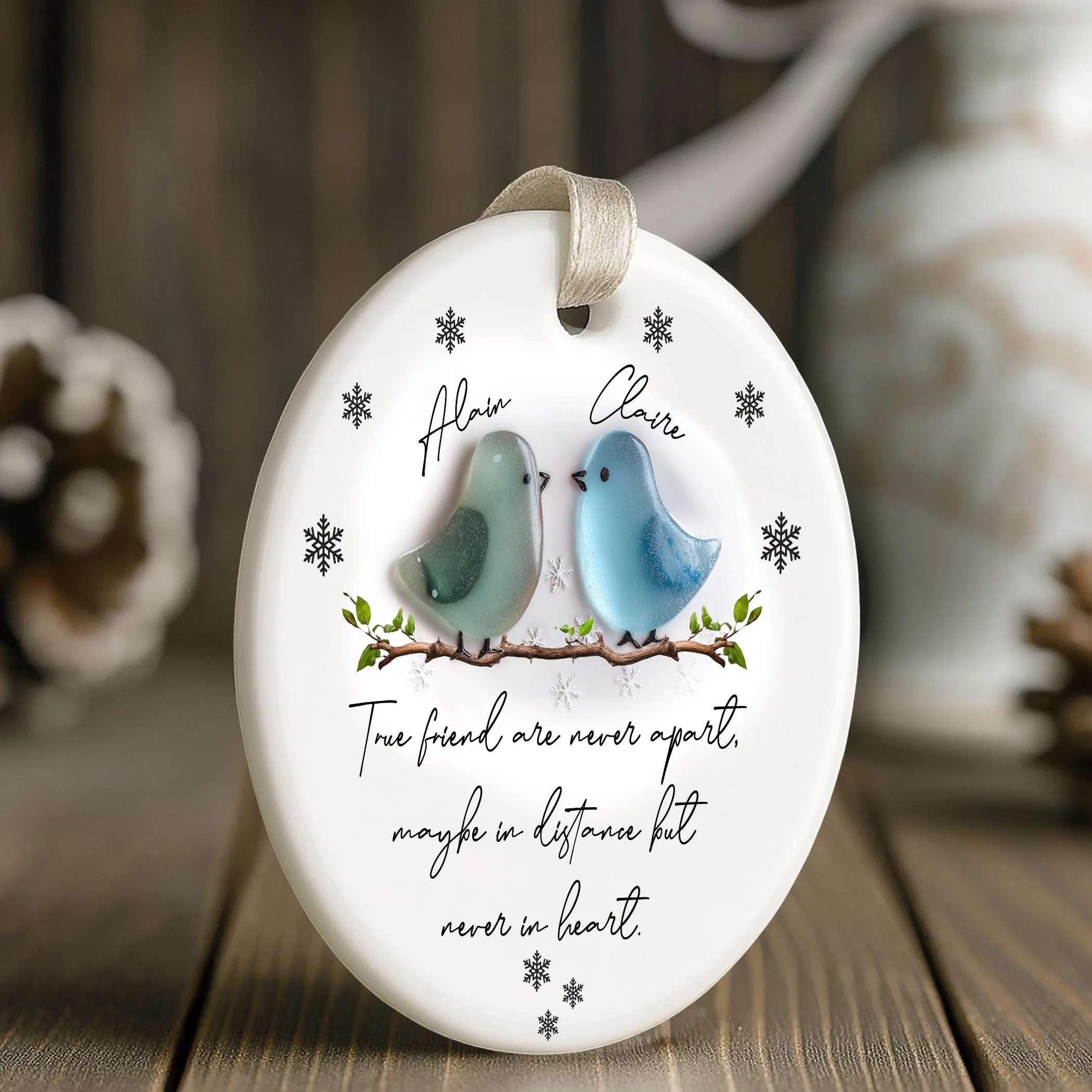 True Friends Are Never Apart Round Shape Acrylic On Ceramic Xmas Ornament, Sea Glass Ceramic Ornament