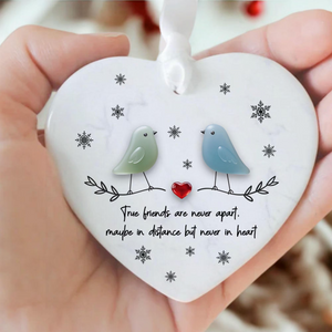 True Friends Are Never Apart Heart Shape Acrylic On Ceramic Xmas Ornament, Sea Glass Ceramic Ornament