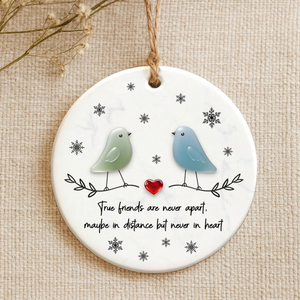 True Friends Are Never Apart Round Shape Acrylic On Ceramic Xmas Ornament, Sea Glass Ceramic Ornament