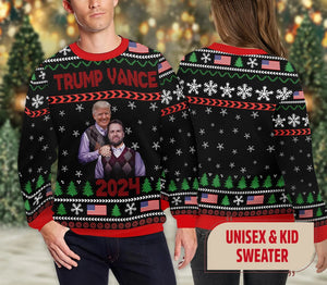 Celebrate the holidays with a hilarious twist in this Trump Vance 2024 ugly Christmas sweater! Perfect for political enthusiasts and MAGA supporters, this festive sweater is sure to spark conversations and laughter.