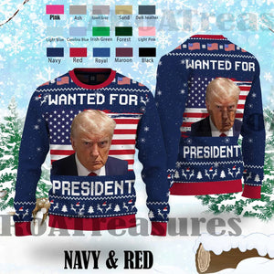 Show your humor and patriotism this holiday season with the "Wanted for President" Christmas sweater! Featuring a bold design with a patriotic backdrop, this funny ugly sweater is perfect for Christmas parties, gatherings, or as a unique gift for political enthusiasts. Made from soft, high-quality knit fabric, it’s designed for comfort and style for both men and women.