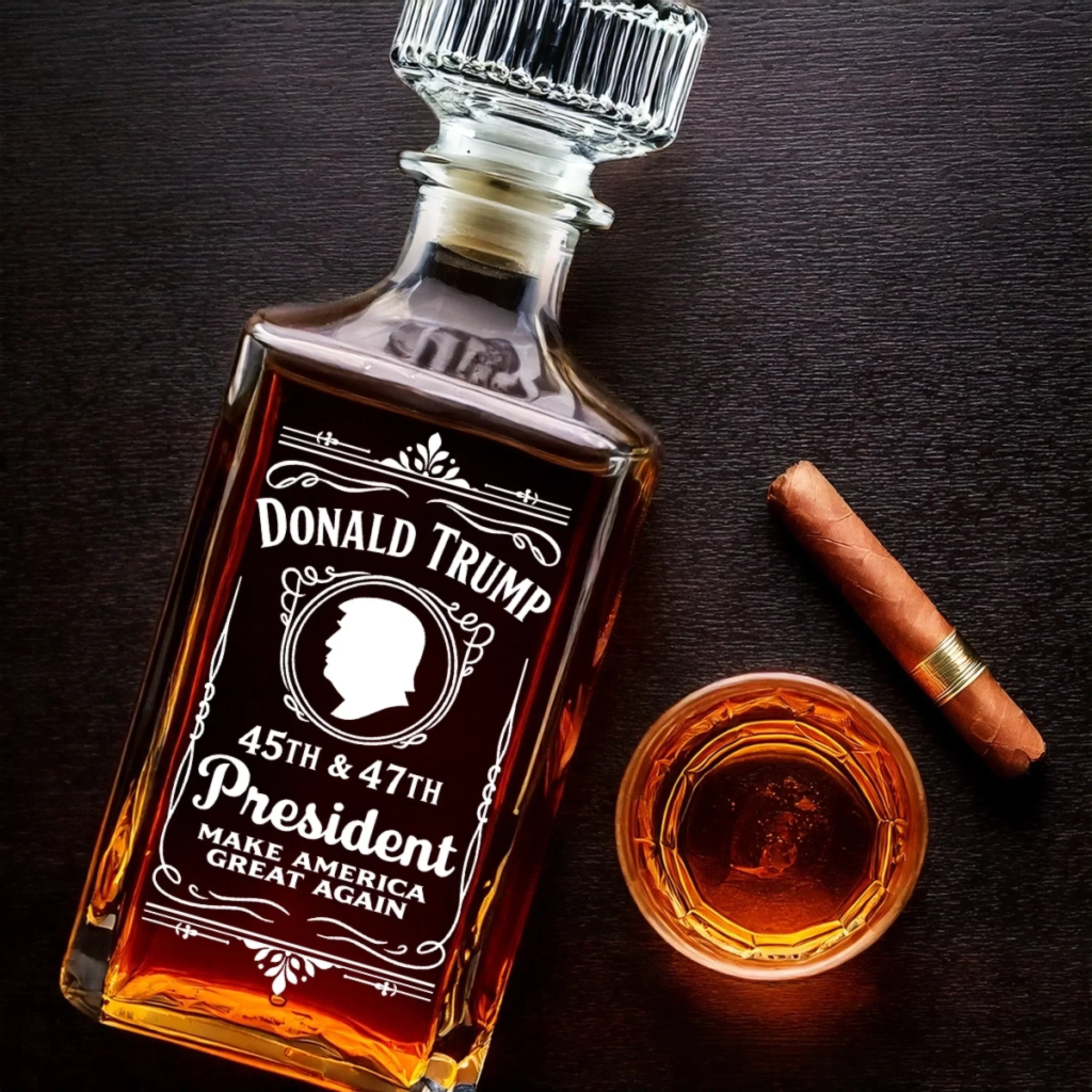Trump MAGA 45 47 Republican Glass Whiskey Decanter, Luxury Whiskey Glass, Whiskey Decanter Set