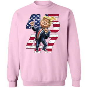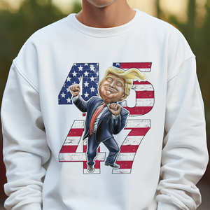 Show your support for both the 45th and 47th U.S. Presidents with the Trump2024 45th & 47th US President Sweatshirt. Featuring a playful and funny design of Donald Trump dancing, this sweatshirt combines humor and patriotism in a bold and stylish way. Perfect for political enthusiasts, Trump supporters, or anyone who enjoys adding a bit of lightheartedness to their wardrobe, this sweatshirt is sure to turn heads and spark conversations.