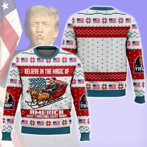 Trump2024 Believe In Magic Make Christmas Great Again Ugly Christmas Sweater