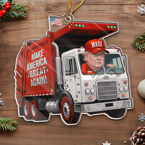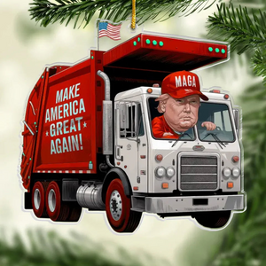 Trump 2024 Garbage Truck Custom Shaped Acrylic Ornament – A Bold & Hilarious Holiday Statement!