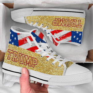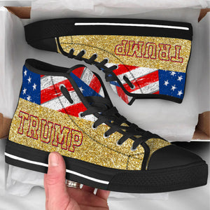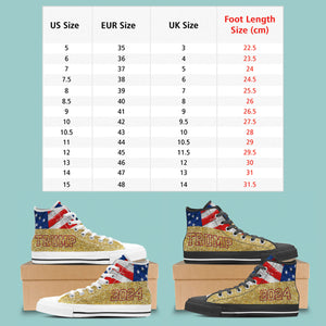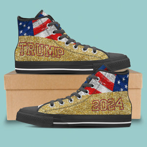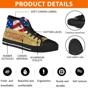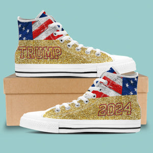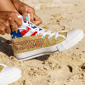 Trump2024 Gold Glitter Effect Unisex Shoes, Trump 2024 America President Canvas Shoes