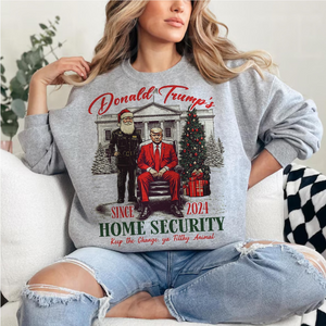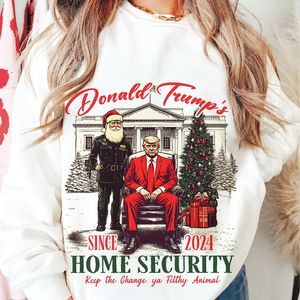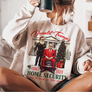 Celebrate the holidays with a humorous and patriotic twist in the Trump 2024 Home Security White House Funny Christmas Sweatshirt! This fun and bold sweatshirt combines Christmas cheer with a political message, making it the perfect choice for Trump supporters and those with a good sense of humor. Featuring a playful "Home Security" design that incorporates the iconic White House, this sweatshirt is a witty way to show your support for President Trump in the 2024 election. Whether you're lounging at home, attending a holiday gathering, or out running errands, this sweatshirt brings warmth, comfort, and laughter to your festive season.
