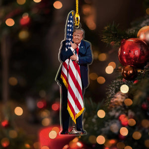 Trump2024 Hugging America Flag Acrylic Ornament, Funny Political Gift 2024, Christmas Ornament