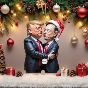 Bring some lighthearted humor to your holiday season with this unique Trump2024 Hugging Musk Acrylic Ornament. Featuring a playful design of former President Donald Trump sharing a friendly hug with tech mogul Elon Musk, this ornament makes a bold statement for those who enjoy a mix of politics and humor. Whether you're decorating your Christmas tree or looking for the perfect gift for the political enthusiast in your life, this ornament is sure to spark conversation and laughter.