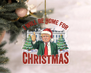 Celebrate the season with a patriotic touch by adding the Trump 2024 "I'll Be Home For Christmas" Acrylic Ornament to your holiday décor. This festive ornament features a beautifully designed White House motif, symbolizing the spirit of leadership and the promise of a hopeful future. Crafted from high-quality acrylic, this durable ornament showcases vibrant colors and intricate details, making it a perfect addition to your Christmas tree or a thoughtful gift for supporters of the 2024 campaign. With the message "I'll Be Home For Christmas," it captures the essence of homecoming, family, and American values, creating a timeless keepsake for this holiday season.
