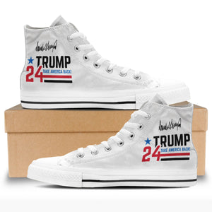 Step into the future with style and pride! Our Trump 2024 Unisex Canvas Shoes are the perfect blend of comfort, durability, and patriotic flair.