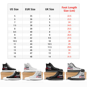 Wear your beliefs proudly and make a statement wherever you go! Whether you're gifting these to a fellow supporter or adding them to your collection, these shoes are a must-have for the 2024 campaign season.