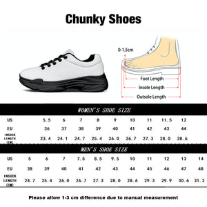 - Sole: Thick, chunky sole for maximum comfort and trendiness, in a pure white or two-tone red/blue gradient.