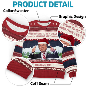 Get into the holiday spirit and show your political flair with our Trump 2024 Make Christmas Great Again Ugly Sweater! Perfect for holiday parties, Christmas gatherings, or just spreading some festive cheer, this humorous and eye-catching sweater combines the best of both worlds: Christmas fun and political humor.