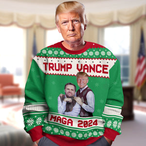 Trump2024 Vance Custom Ugly Christmas Sweater - Funny Political Shirt