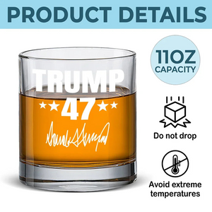 Trump47 US President 2024 Whiskey Glass, Patriotic Wine Glasses, Presents For Dad
