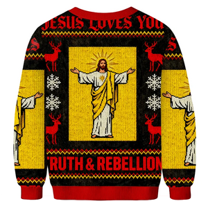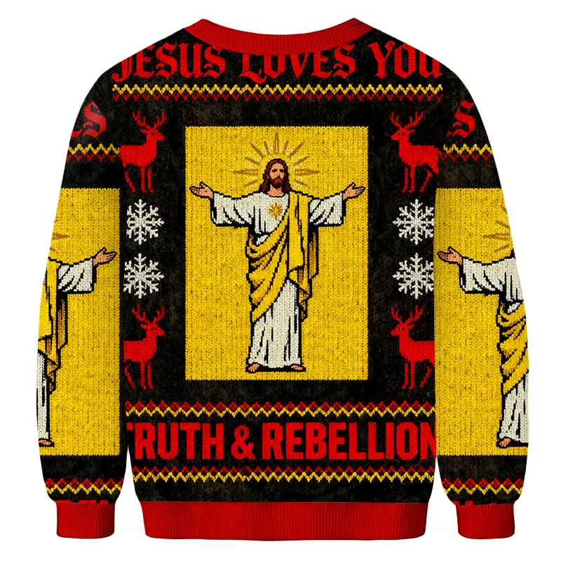 Truth & Rebellion Jesus Ugly Sweater, Funny Christmas Ugly Sweatshirt, Xmas Ugly Sweater, Christmas Gift For Christian