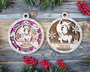 Unicorn Tis The Season Personalized Wood Christmas Ornaments, Christmas Gifts