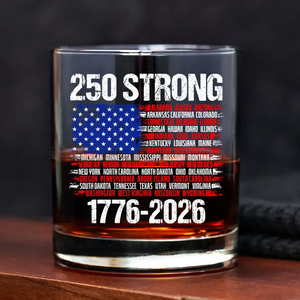 USA 250 Strong Flag American States Patriotic Whiskey Glass, Gift For Whiskey Lover