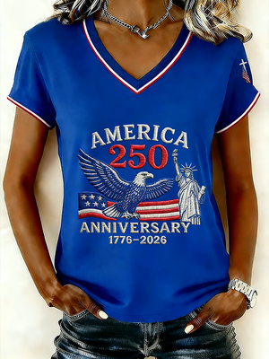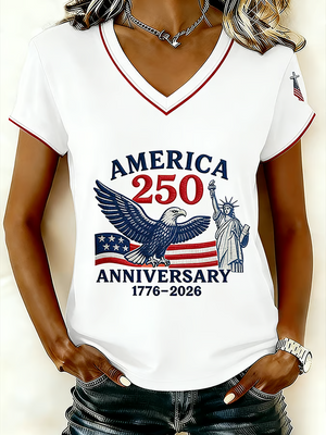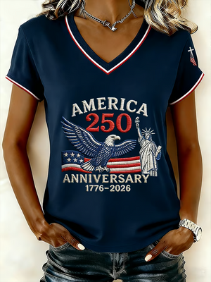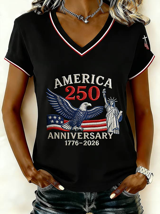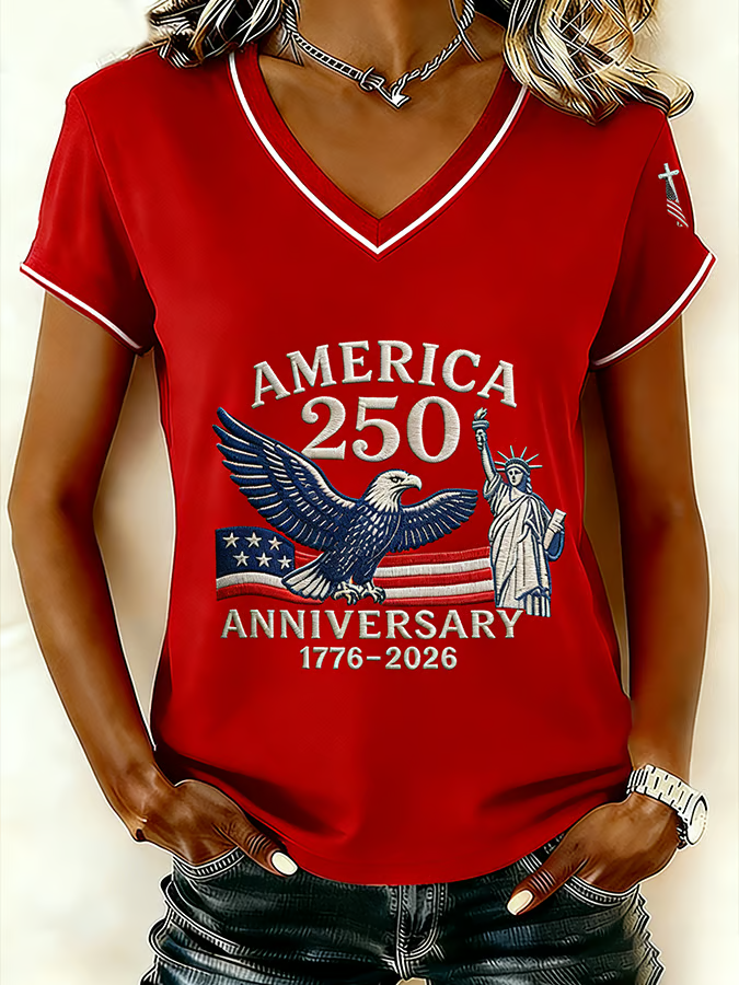 USA 250th Anniversary V-neck, 250 Years of America Shirt, Patriotic Women Tees, 4th of July Patriotic Gift