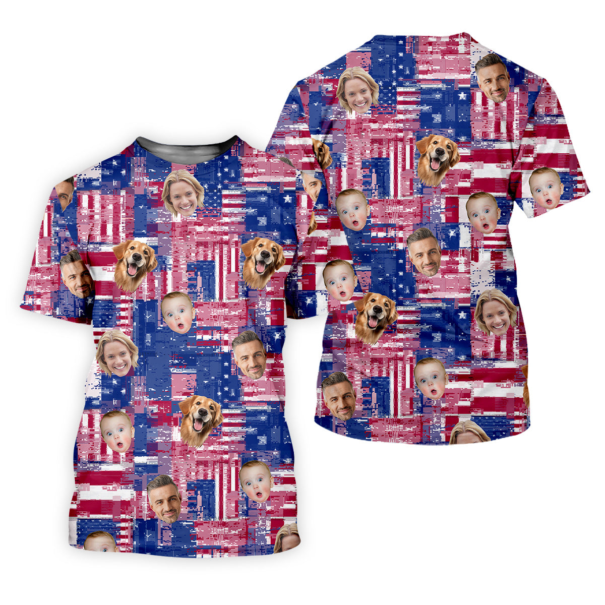 USA Flag Golf Shirts, Custom Face Shirt, Men's Golf Polo Shirt, Men's 4th Of July Shirts