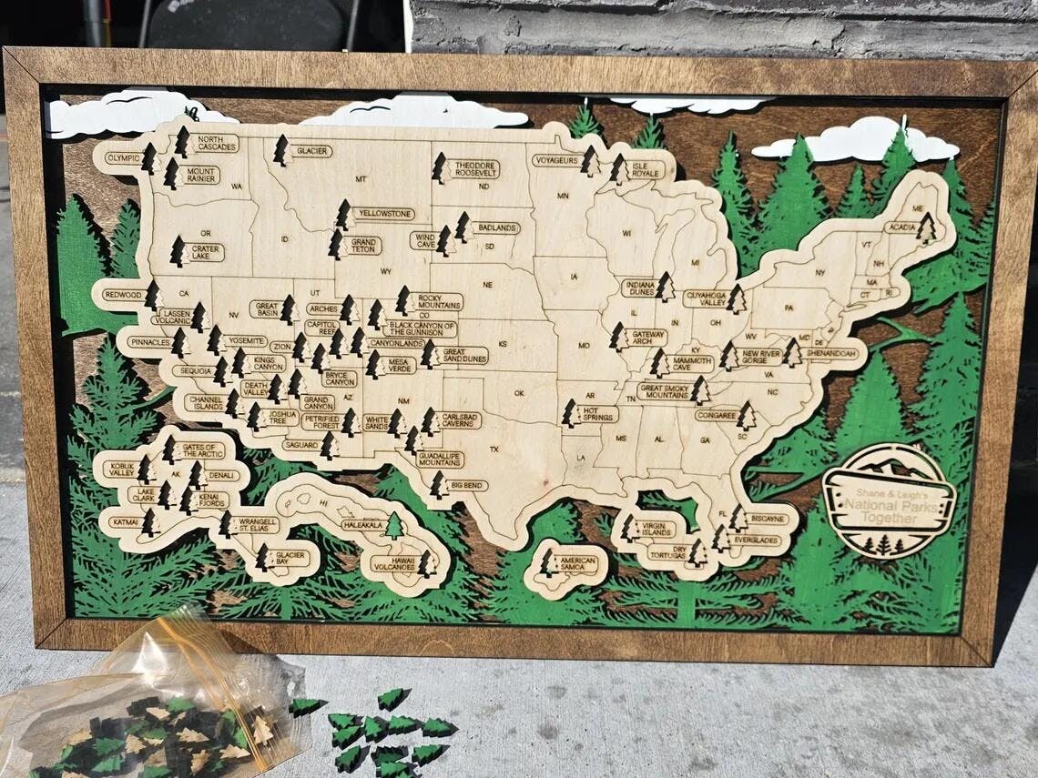 Perfect for nature lovers and explorers, it's an artistic way to display the national parks your family has visited.