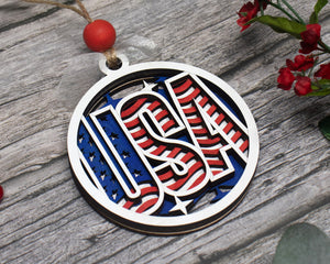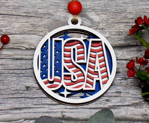 USA Ornament, America Christmas Ornament, Patriotic Gifts, 3-Layer Wooden Ornament