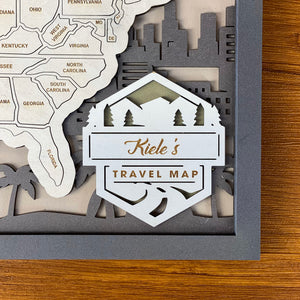 USA Travel Map With Pin, USA Landscape Map, United States Road Trip Map, Gift For Traveler