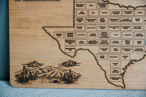 Texas Bucket List Board, Gift For Nature Lover, Wooden Tracker