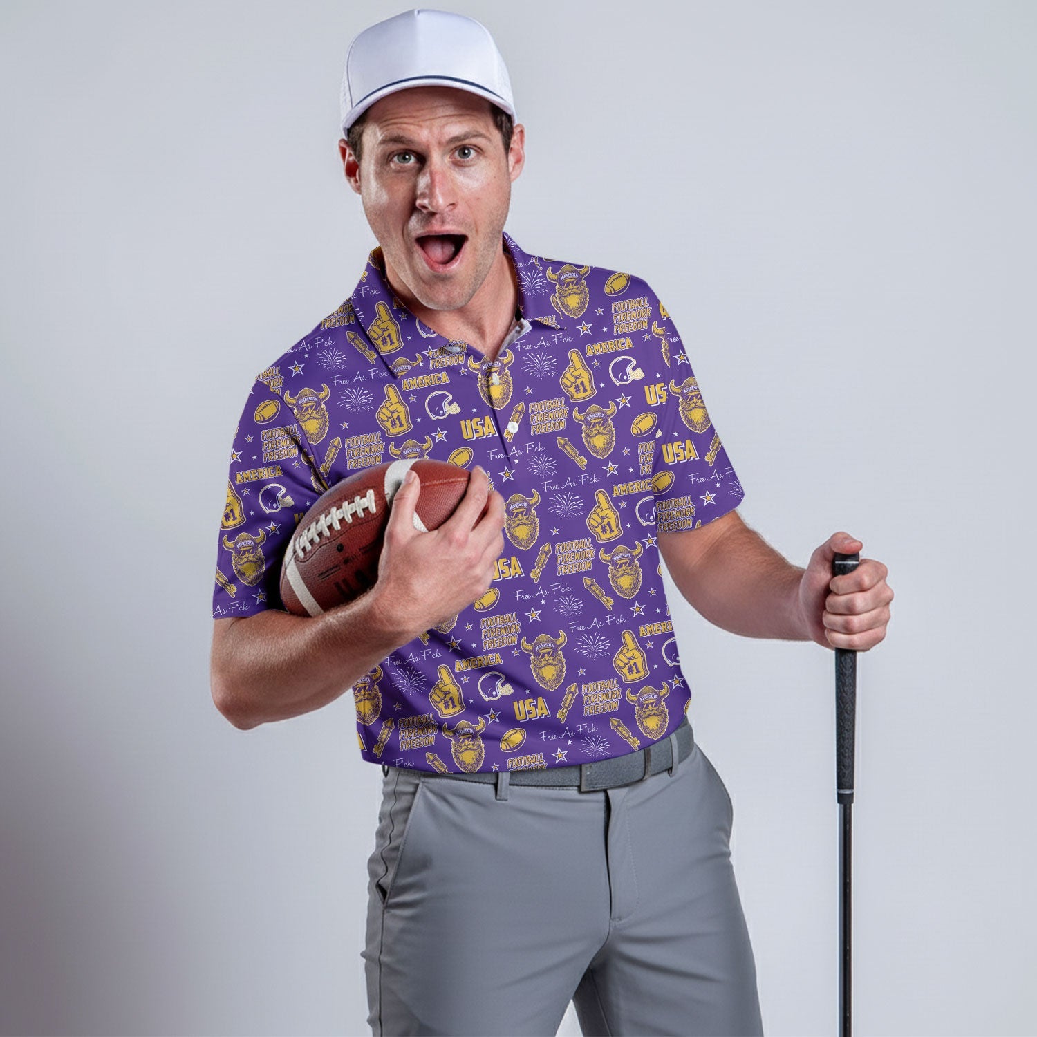 Viking Man Purple Gold White Sport Polo, American Football League Gift Ideas For Football Fans