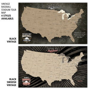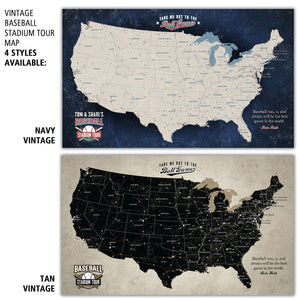 The perfect gift for any baseball fan is our custom vintage weathered Baseball Stadium Tour Map. This unique map showcases the locations of all 30 Major League Baseball stadiums, as well as the Baseball Hall of Fame. Each stadium is marked with a baseball icon to commemorate your visits.