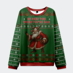 Vintage Krampus Sees You When You're Bad Funny Ugly Sweater, Ugly Xmas Sweater, Christmas Ugly Sweatshirt