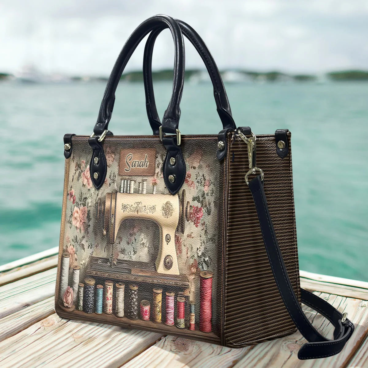 Vintage Sewing Room - Personalized Sewing Leather Handbag - Boho Handbag - Leather Shoulder Bag