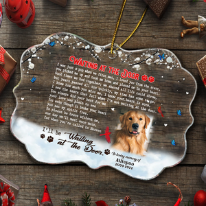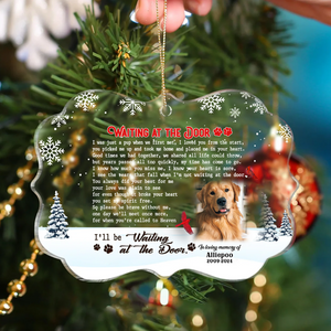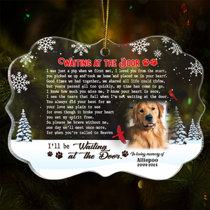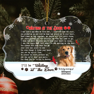 Waiting At The Door Custom Photo Memorial Christmas Acrylic Ornament, Gifts For Loss Of Dog