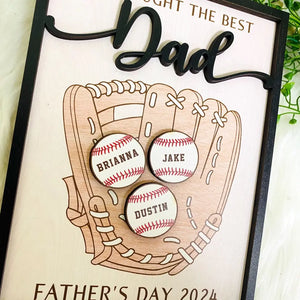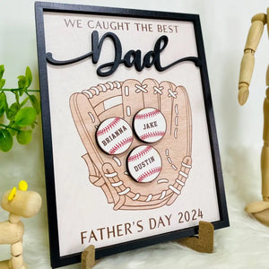 We Caught The Best Dad Personalized 2 Layered Wooden Sign, Custom Kid's Names Throwing Ball, Great Ball Catcher, Gift for Dad