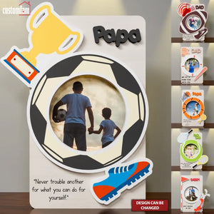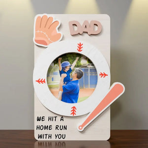 We Hit A Home Run With You Personalized Father's Day Sport Photo Frame, 2 Layered Wooden Sign, Gifts For Dad