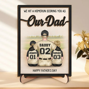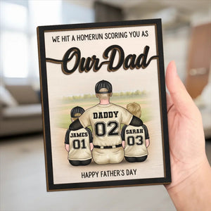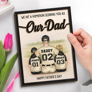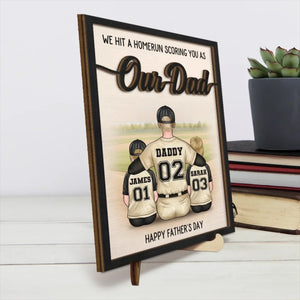 We Hit A Homerun Scoring You As Our Dad Custom 2-Layered Wooden Plaque, Gift For Dad