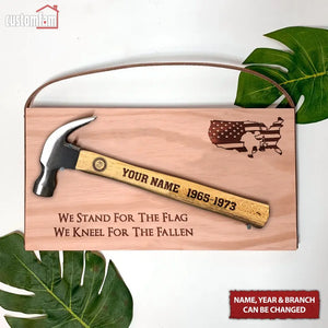 We Stand For The Flag We Kneel For The Fallen Personalized Engraved Hammer with US Flag, Framing Hammer, Veteran Gift For Dad