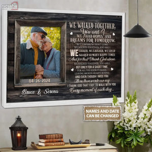 We Walked Together You And I Anniversary Canvas Prints, Custom Name Couple Gifts, Memorial Old Loving Couple Gift