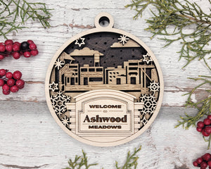 Welcome Ashwood Meadows Smalltown Personalized 3D Wood Christmas Ornaments, Welcome Sign Ornament